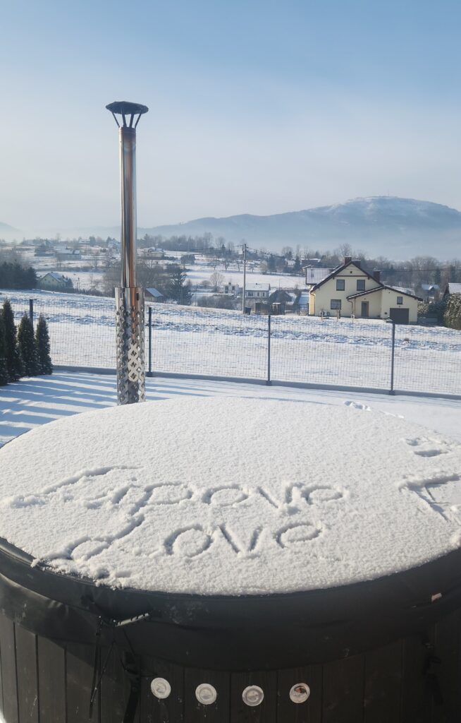 Każdy z domków posiada prywatną balię, w której możesz odprężyć się o każdej porze dnia i cieszyć się gorącą kąpielą w otoczeniu Beskidzkiej przyrody